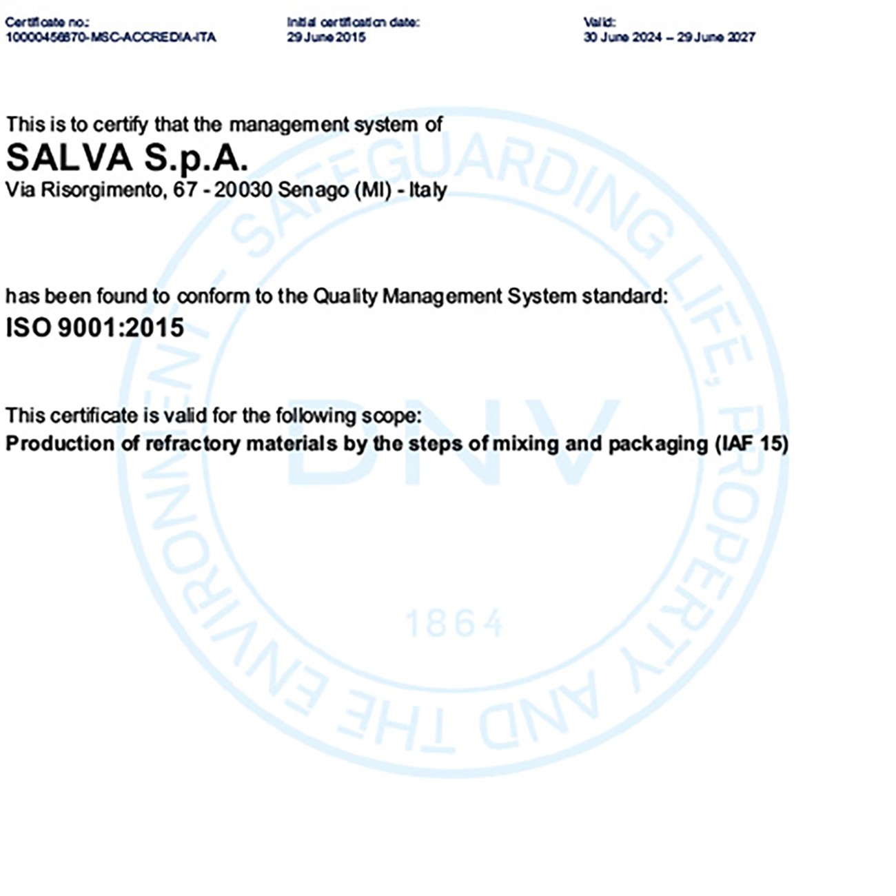 Product approval is no problem for users, as only accreditated institutions are authorized to perform chemical and physical analyses on Salva refractories.